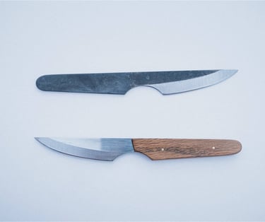 Every knife I create is unique, featuring handles crafted from recycled skateboard wood